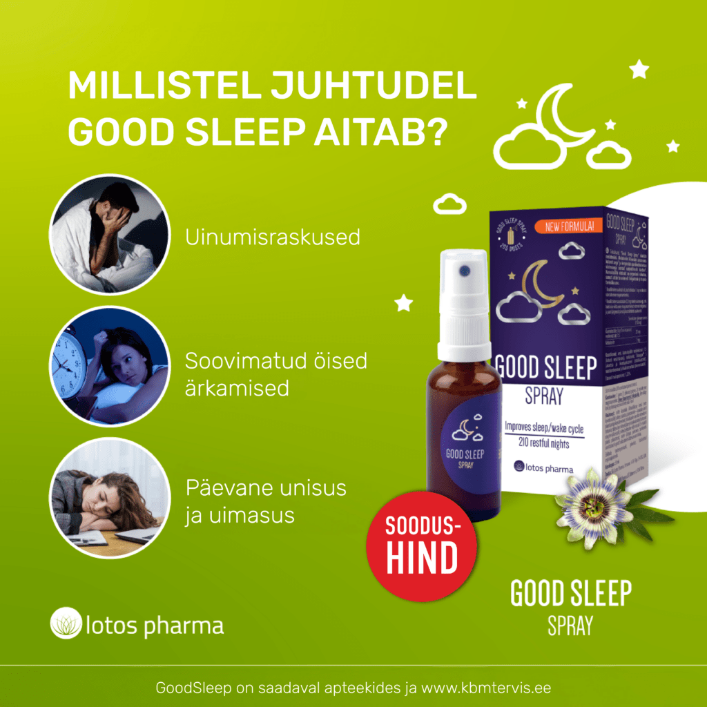 Good Sleep sprei ja kapslid on saadaval apteekides üle Eestis ja www.kbmtervis.ee.