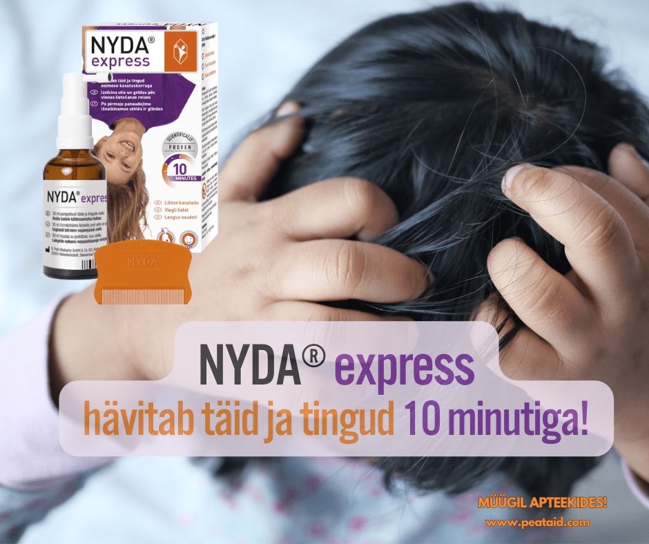 „NYDA express sisaldab kaheastmelist dimetikooni, mis tungib tänu oma väga heale voolavusele täi ja tingu hingamissüsteemi, tõrjub sealt õhu ja lämmatab täid ja tingud juba 10 minuti jooksul,“ selgitab proviisor NYDA toimet. „Tähtis on, et täivastane vahend hävitaks täid ja tingud esimese kasutuskorraga. Täide hävitamine pole tänapäevaste vahenditega kuigi keeruline, raskemaks osutub just tingudest jagu saamine – aga kui tingud jäävad ellu, siis umbes nädala pärast arenevad neist juba uued täid ja kõik kordub. Seega: kui vahendi kasutusjuhendis on nõue ravi korrata, siis on oht, et tingud selle ravi toimel ei hävi.“
