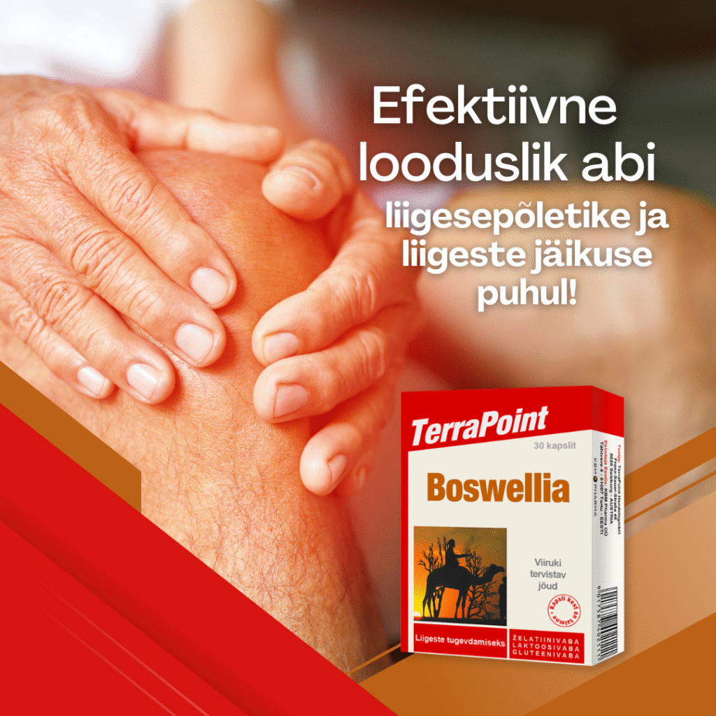 Terrapoint Boswellia kapslid on retseptivabalt saadaval apteekides kõikjal üle Eesti ja www.kbmtervis.ee.